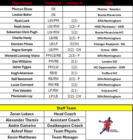 The team, staff, and British Handball community are excited to see the squad in action as they continue their journey toward international success.